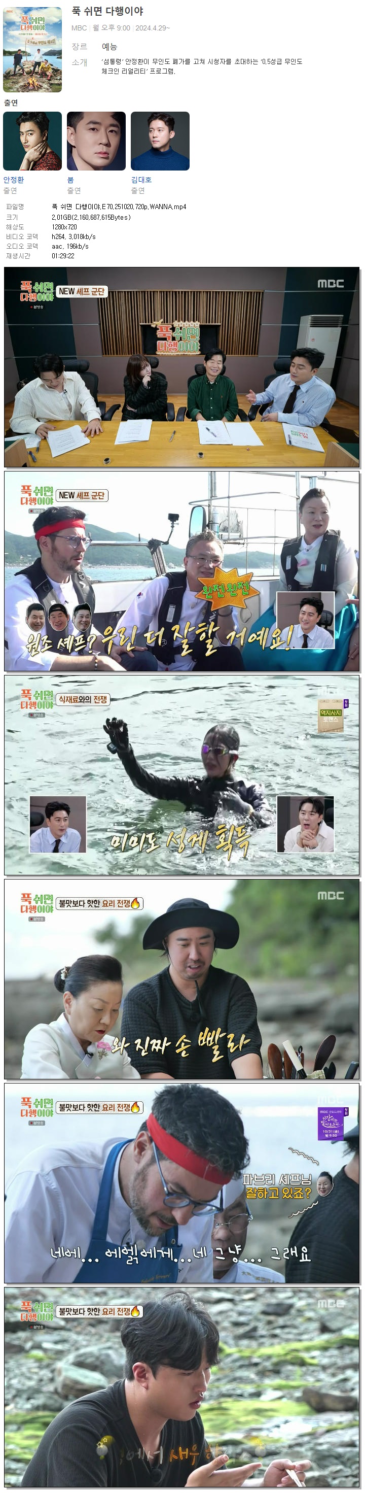 [MBC] 푹 쉬면 다행이야.E70.251020.720p.WANNA[안유성, 파브리]