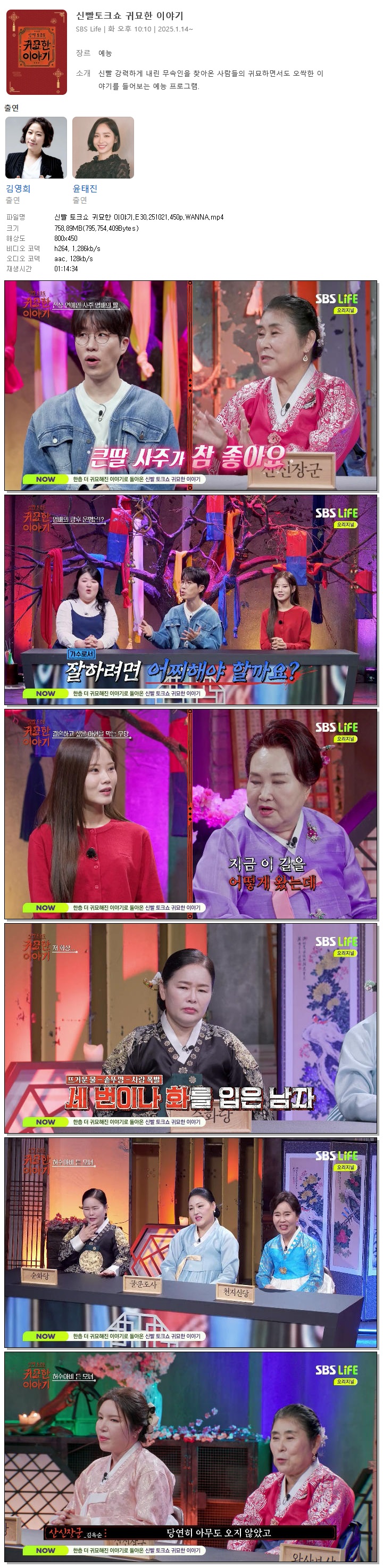 [SBS LIFE] 신빨 토크쇼 귀묘한 이야기.E30.251021.450p.WANNA[고영배, 배아현]
