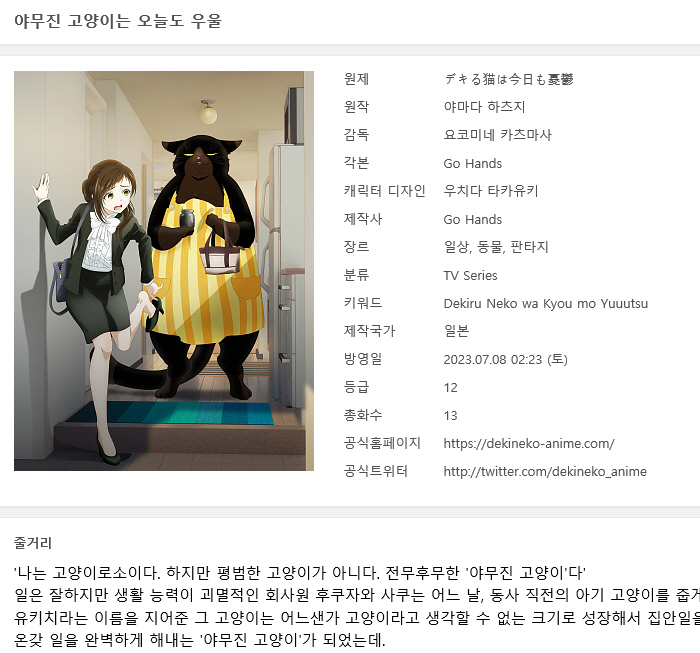 [인생] 야무진 고양이는 오늘도 우울 01-13완결 -일상 동물 드라마-