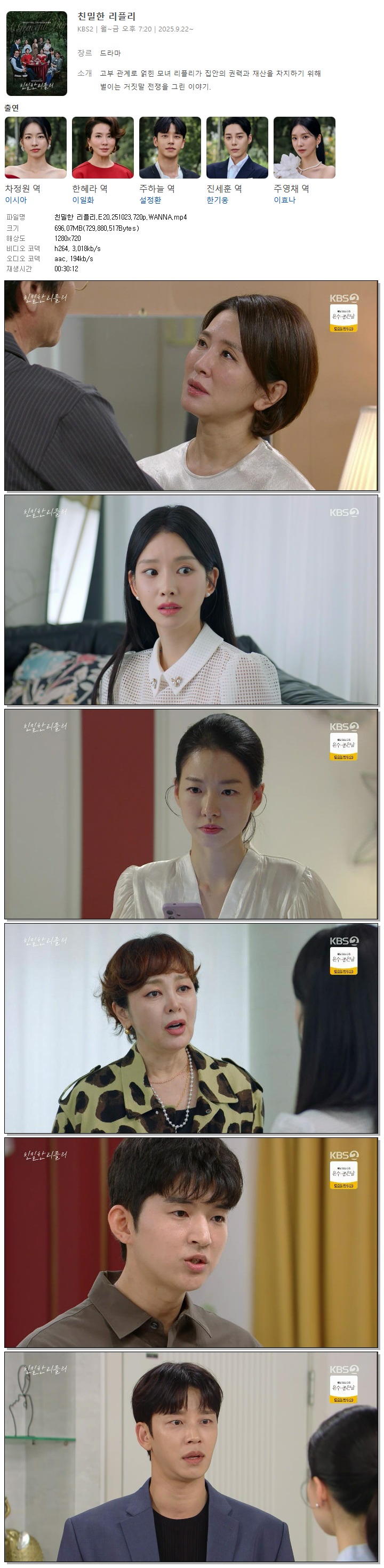 [KBS2] 친밀한 리플리.E20.251023.720p.WANNA[이시아, 이일화].mp4