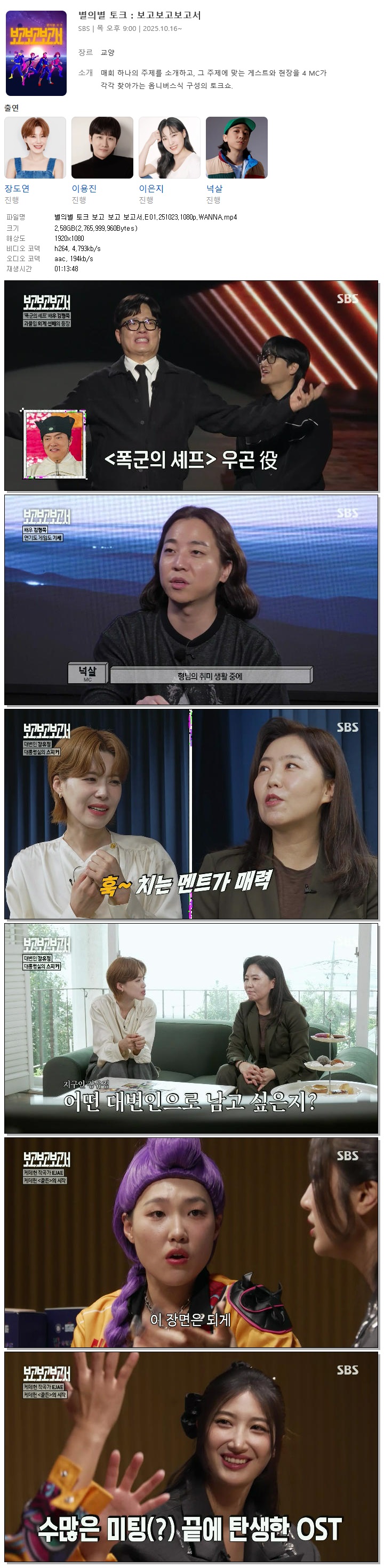 [SBS] 별의별 토크 보고 보고 보고서.E01.251023.1080p.WANNA[장도연, 이용진].mp4