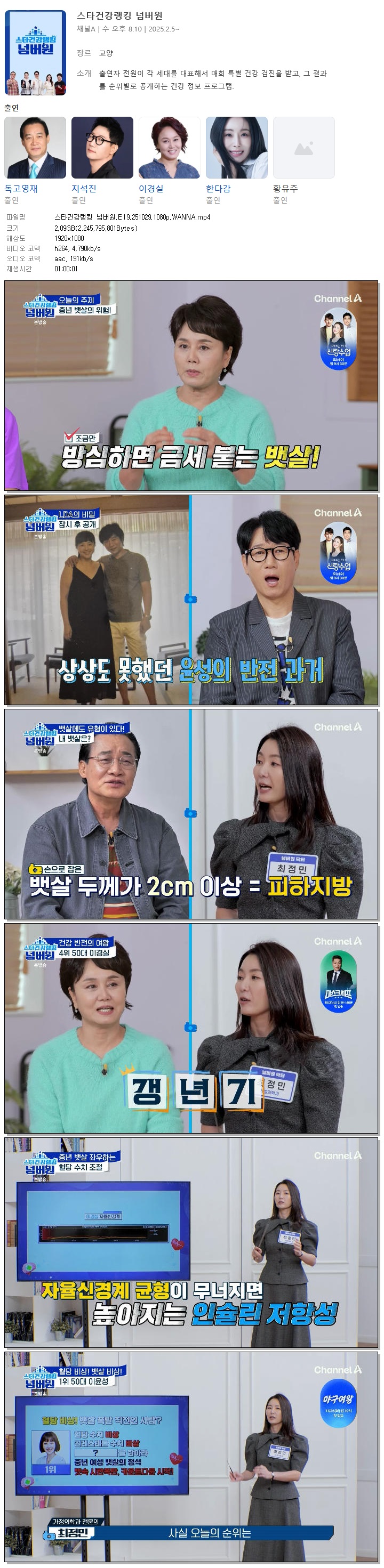 [채널A] 스타건강랭킹 넘버원.E19.251029.1080p.WANNA[지석진, 이경실].mp4