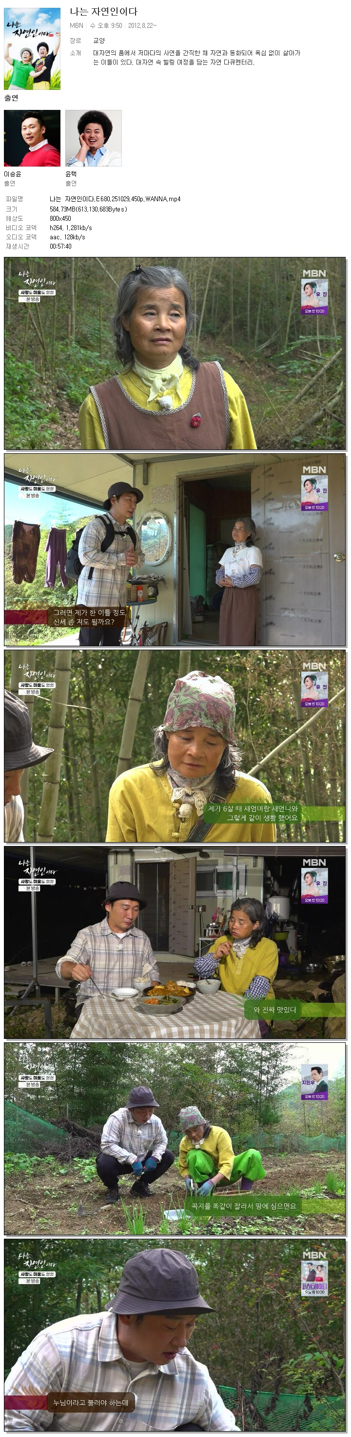 [MBN] 나는 자연인이다.E680.251029.450p.WANNA[이승윤, 윤택]