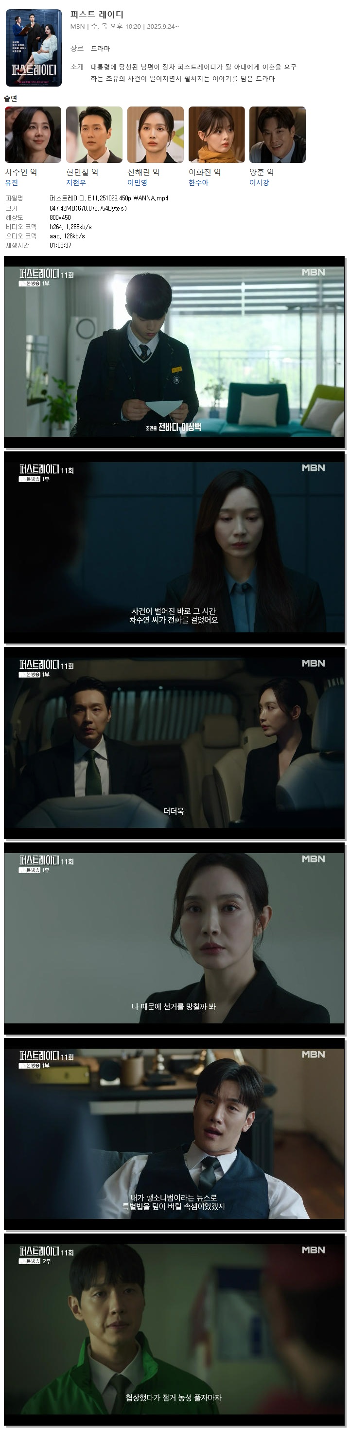 [MBN] 퍼스트레이디.E11.251029.450p.WANNA[유진, 지현우]