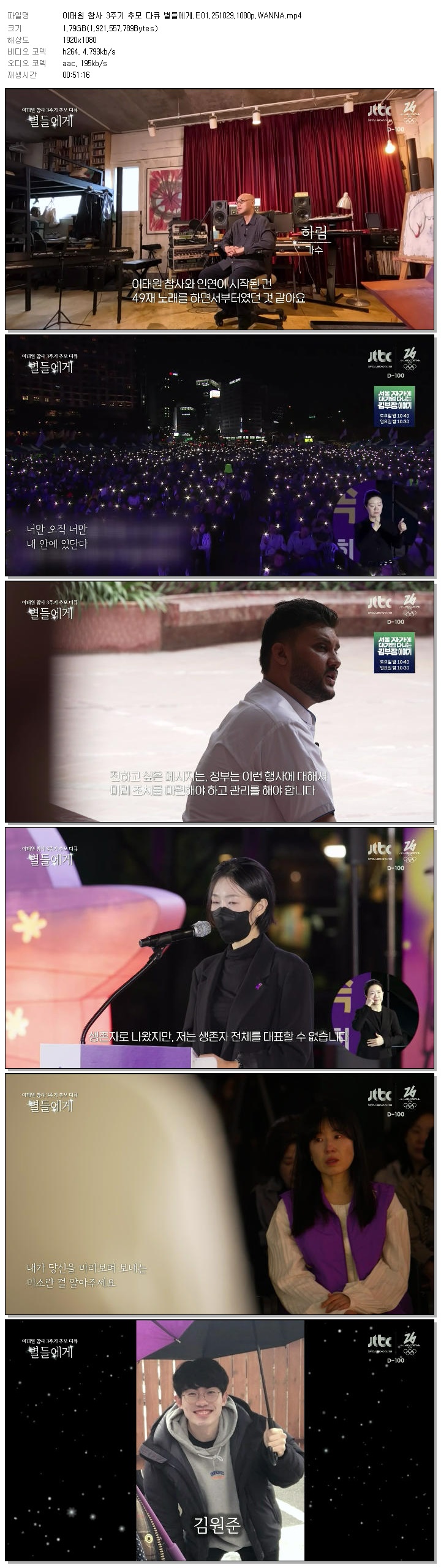[JTBC] 이태원 참사 3주기 추모 다큐 별들에게.E01.251029.1080p.WANNA.mp4