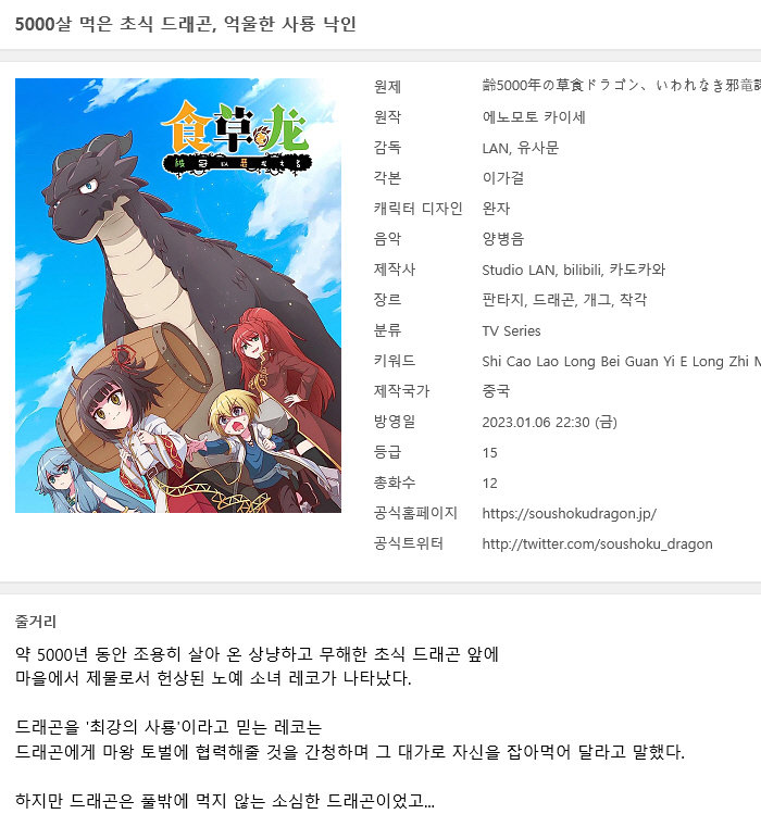 [인생] 5000살 먹은 초식 드래곤 [1기] 01-12완결 -모험 판타지 액션-