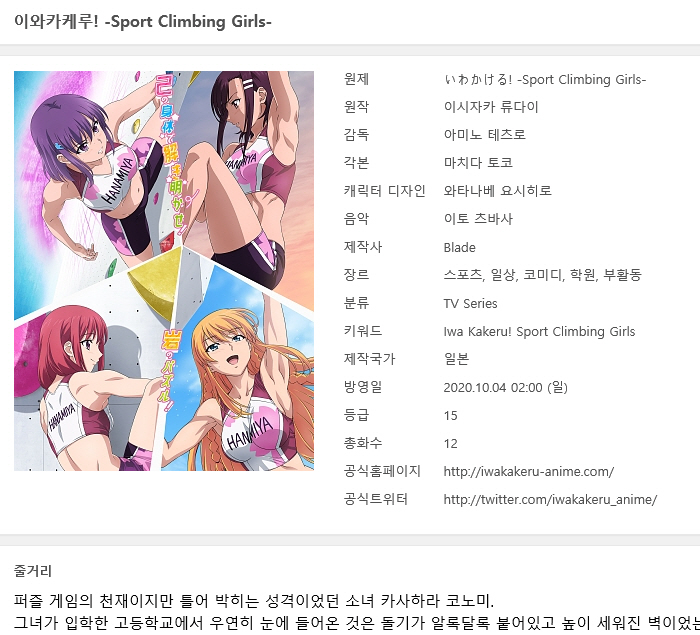 [인생] 이와카케루 Sport Climbing Girls - 01-12완결 -스포츠 클라이밍-