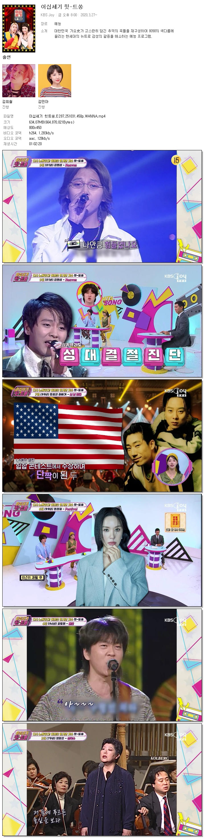 [KBS JOY] 이십세기 힛트쏭.E287.251031.450p.WANNA[김희철, 미주]