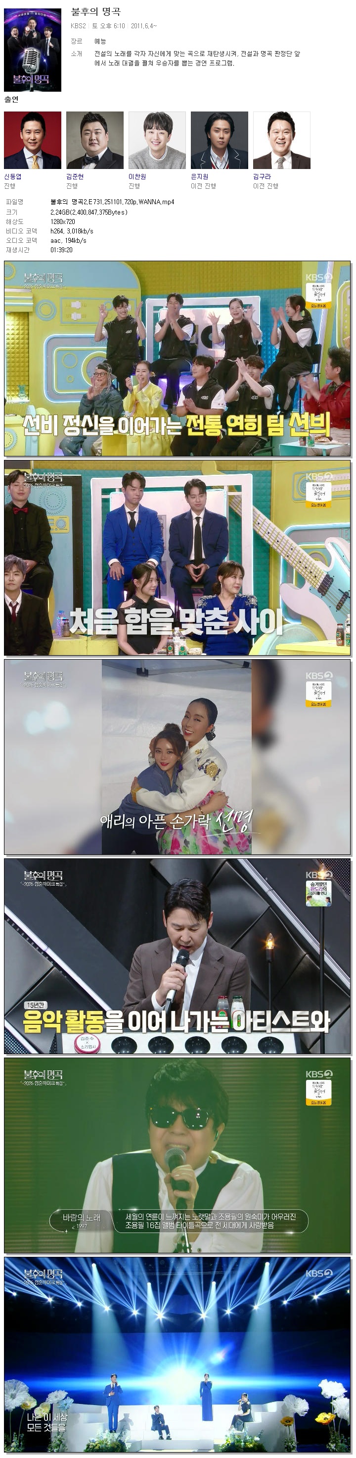 [KBS2] 불후의 명곡2.E731.251101.720p.WANNA[육중완, 박애리]