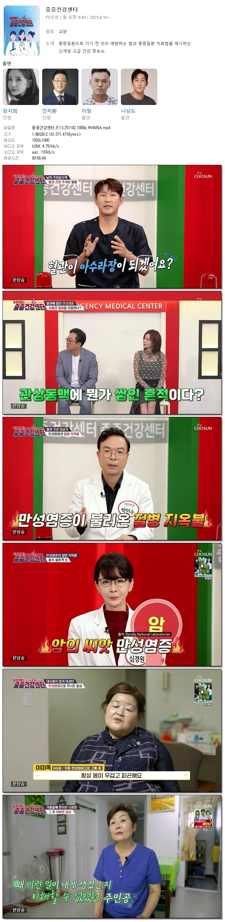 [TV조선] 중증건강센터.E13.251102.1080p.WANNA[장서희, 안지환]