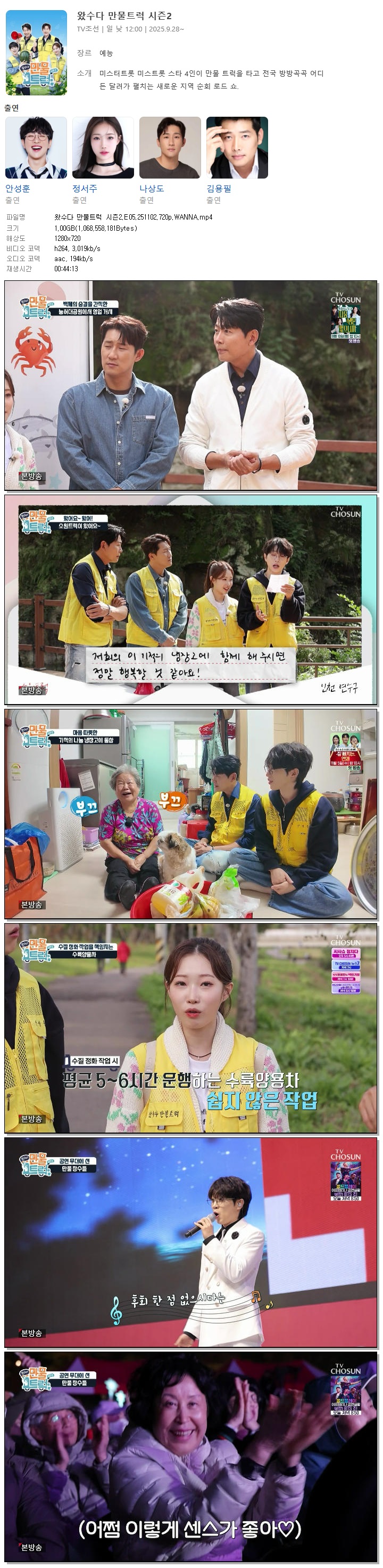 [TV조선] 왔수다 만물트럭 시즌2.E05.251102.720p.WANNA[안성훈, 정서주]