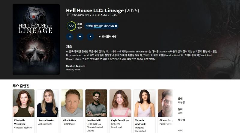 11월호러 저택괴담 [ 헬 하우스 혈통의 저주 ] 1080P 5.1 한글자막