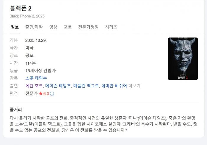 11월호러 에단호크 북미1위 [ 블 랙 폰 2 ] 1080P 5.1 한글자막