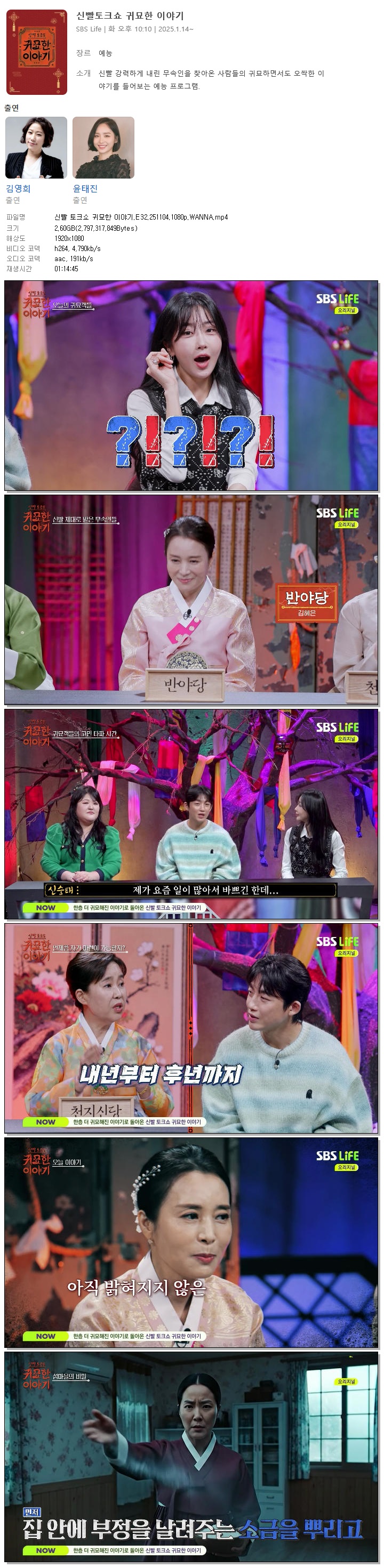 [SBS LIFE] 신빨 토크쇼 귀묘한 이야기.E32.251104.1080p.WANNA[신승태, 수빈]