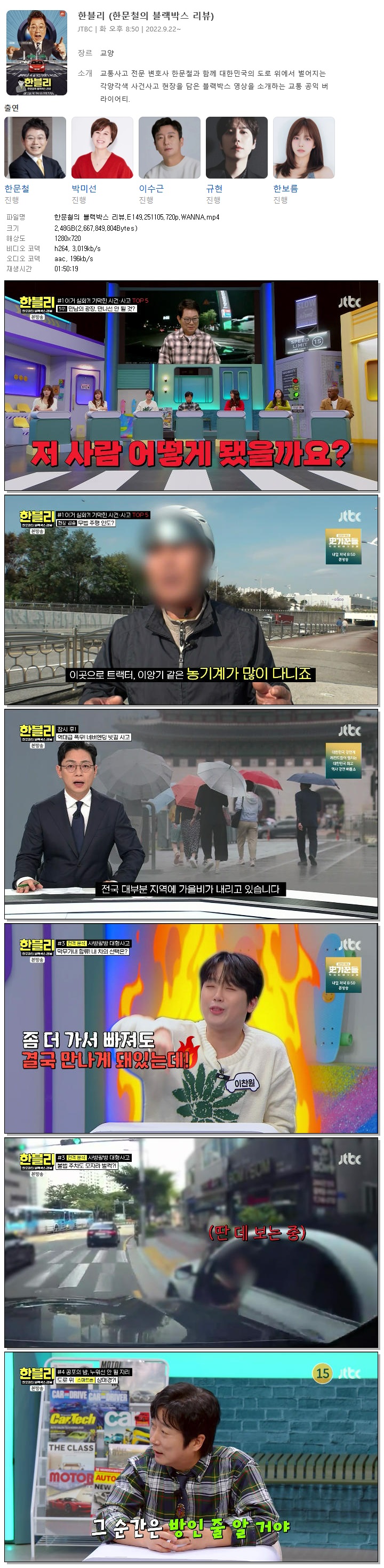 [JTBC] 한문철의 블랙박스 리뷰.E149.251105.720p.WANNA[한승연, 이찬원]