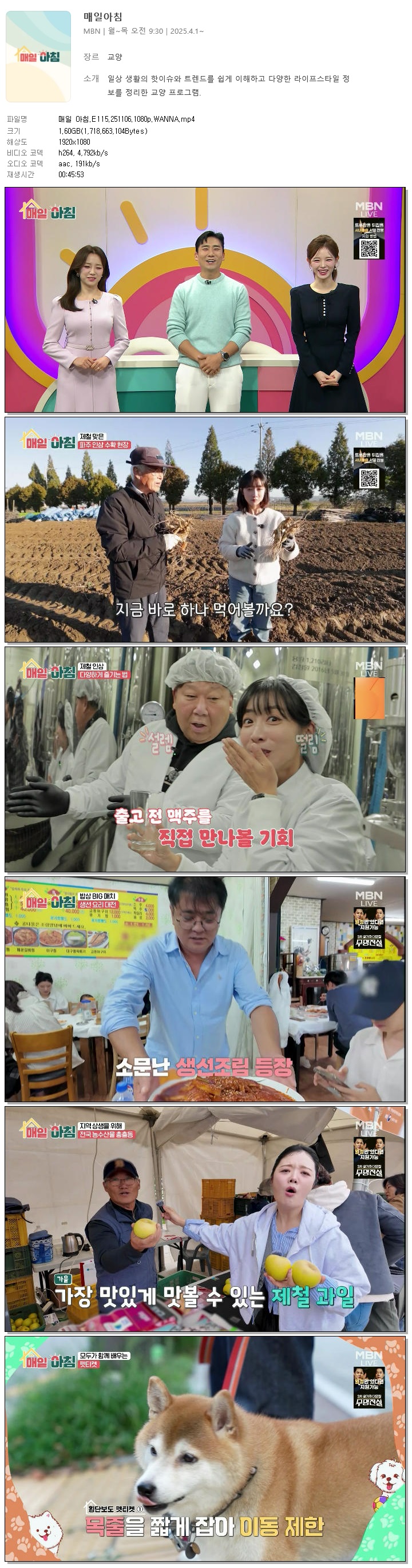 [MBN] 매일 아침.E115.251106.1080p.WANNA[한혜원, 이정수]