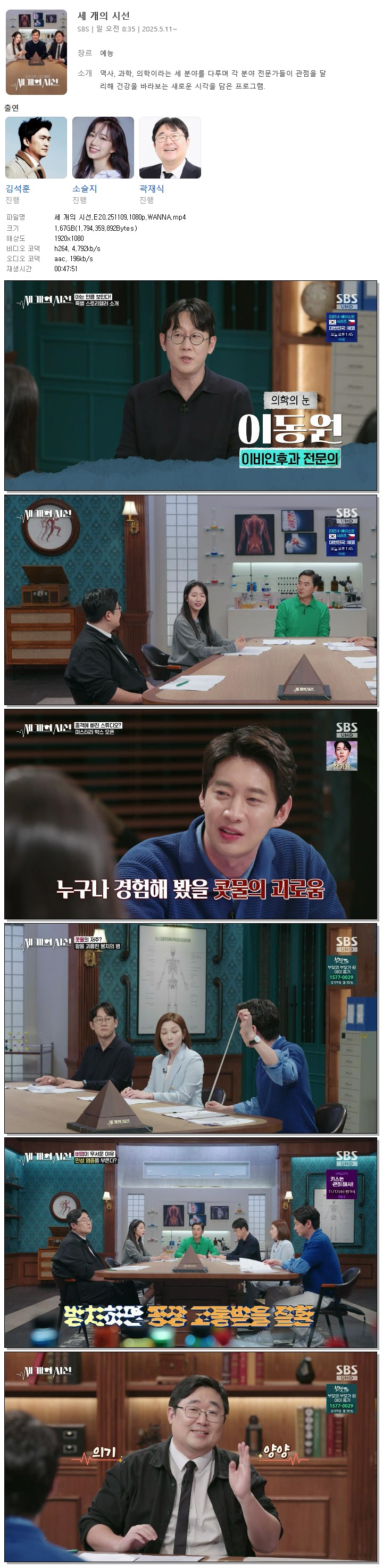 [SBS] 세 개의 시선.E20.251109.1080p.WANNA[김석훈, 소슬지]