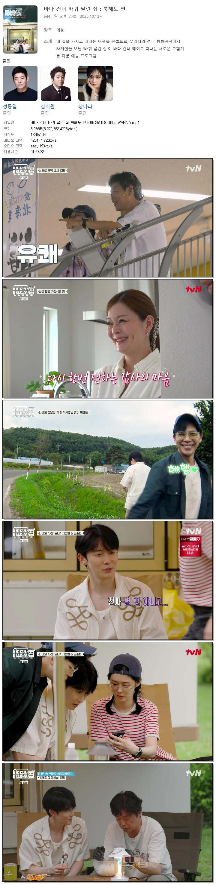[TVN] 바다 건너 바퀴 달린 집 북해도 편.E05.251109.1080p.WANNA[성동일, 장나라].mp4