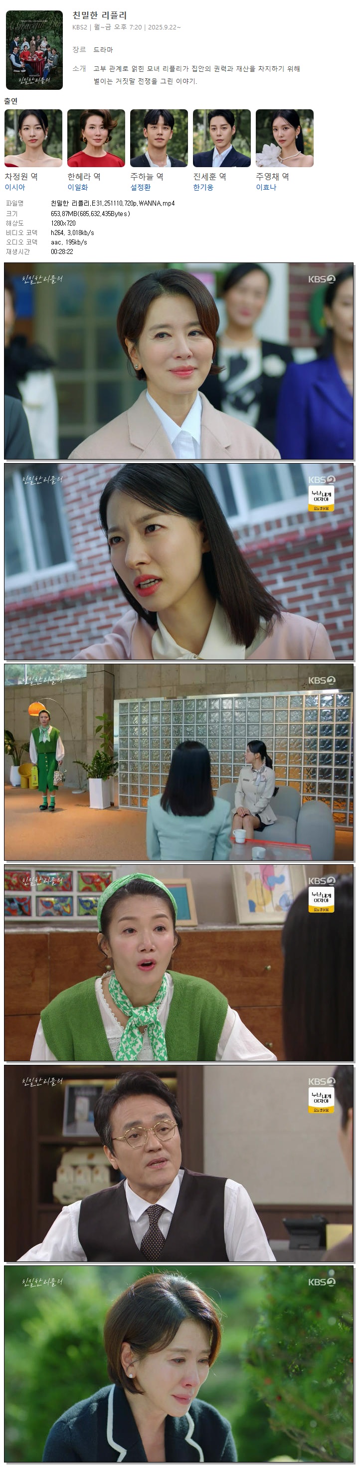 [KBS2] 친밀한 리플리.E31.251110.720p.WANNA[이시아, 이일화].mp4