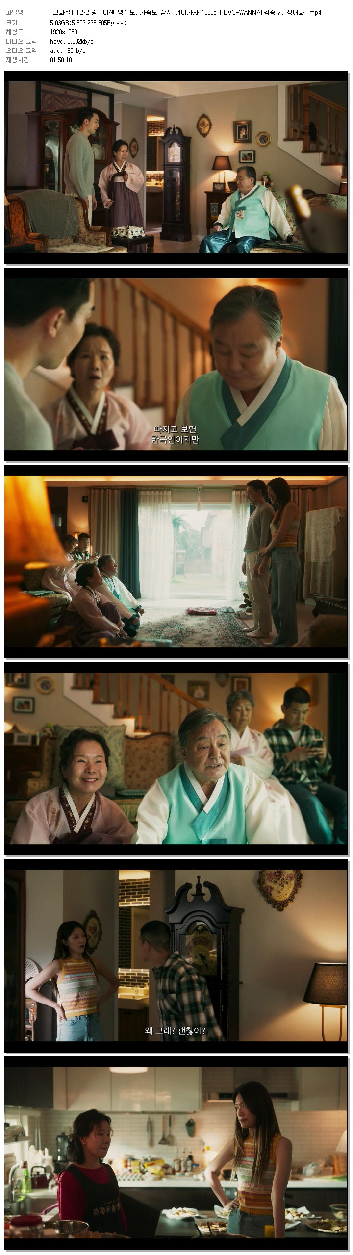[고화질] [라리랑] 이젠 명절도, 가족도 잠시 쉬어가자 1080p.HEVC-WANNA[김종구, 정애화].mp4