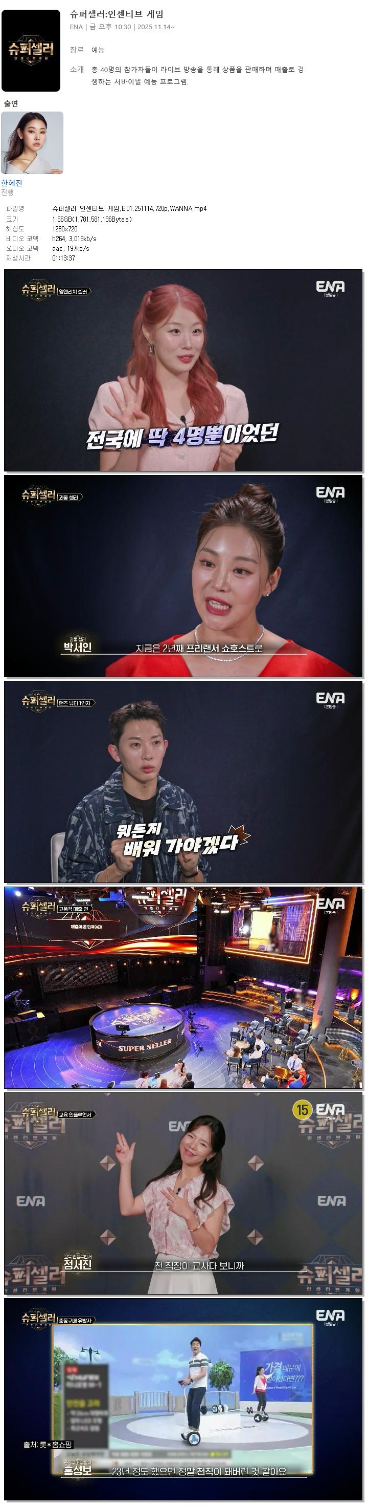 [ENA] 슈퍼셀러 인센티브 게임.E01.251114.720p.WANNA[한혜진].mp4