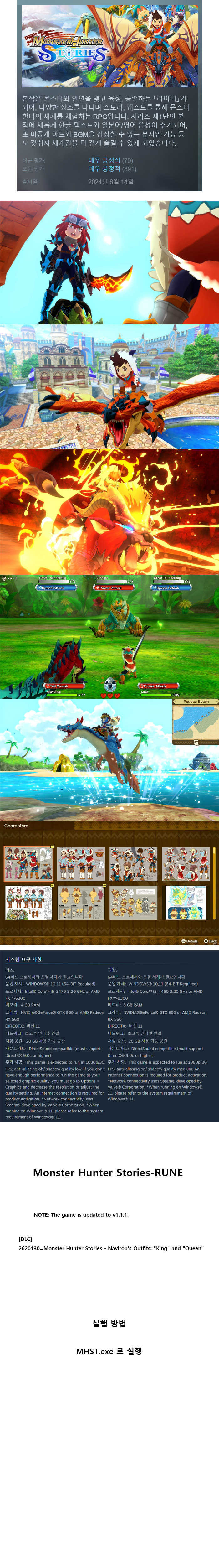 [무설치 실행] 몬스터 헌터 스토리즈 V1.1.1 한글패치