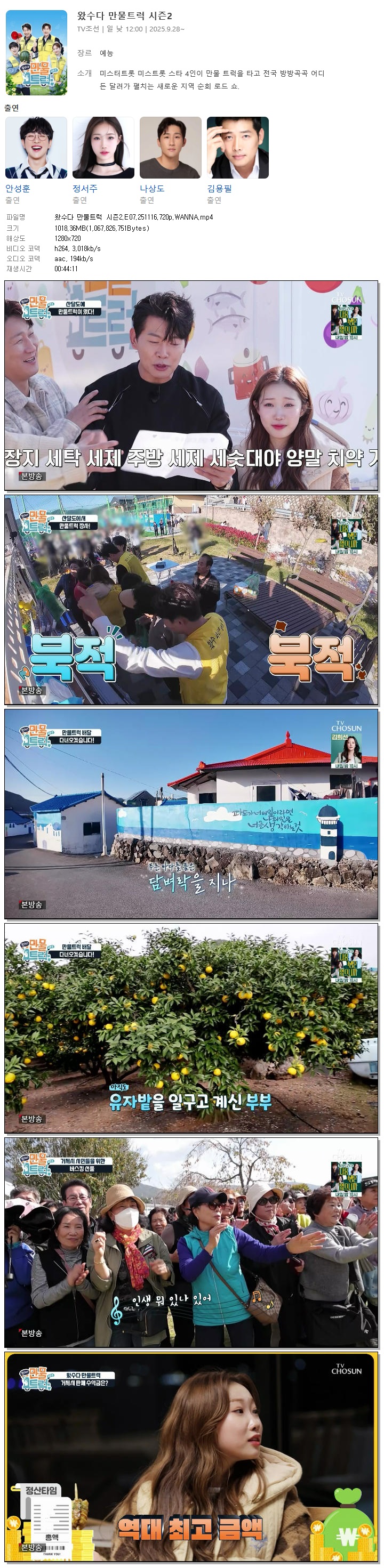 [TV조선] 왔수다 만물트럭 시즌2.E07.251116.720p.WANNA[안성훈, 정서주]