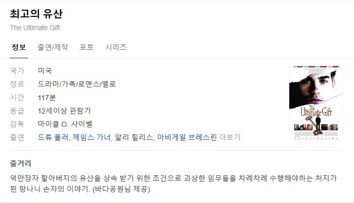 [영화-드라마] 최고의 유산.The Ultimate Gift.2006.1080p.한글자막