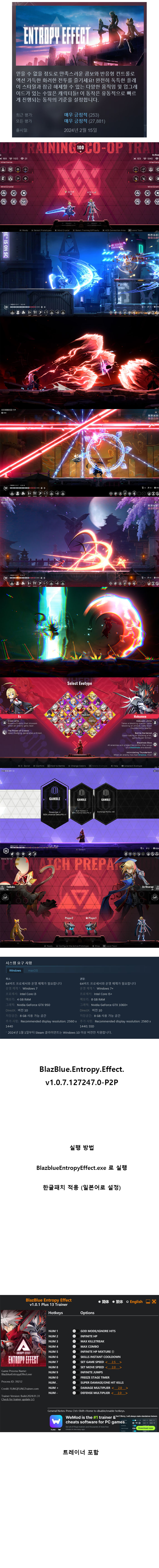 [무설치] 블레이블루 엔트로피 이펙트 V1.0.7.127247.0트레이너 한글