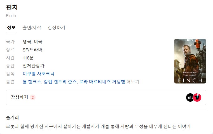 [영화-SF] 핀치.Finch.2021.1080p.한글자막