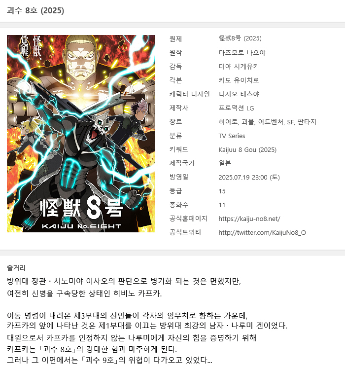 [인생] 괴수 8호 [2기] 01-11(완) [SP 포함] -모험 괴물 SF 액션-