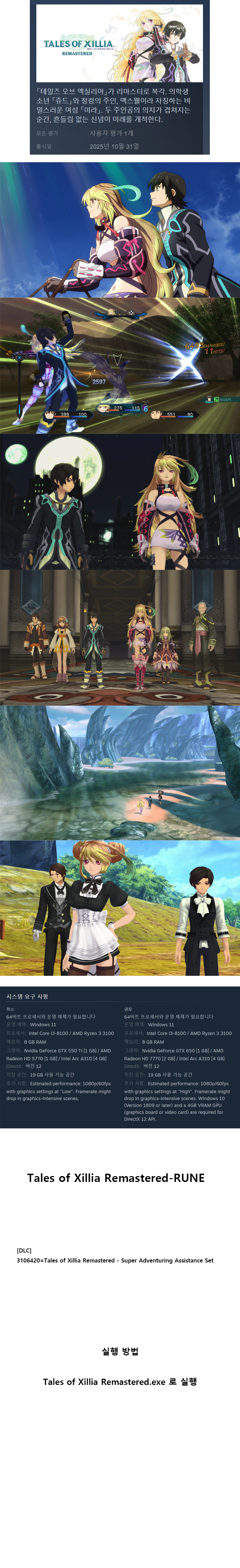 [무설치 실행] 테일즈 오브 엑실리아 리마스터 한글