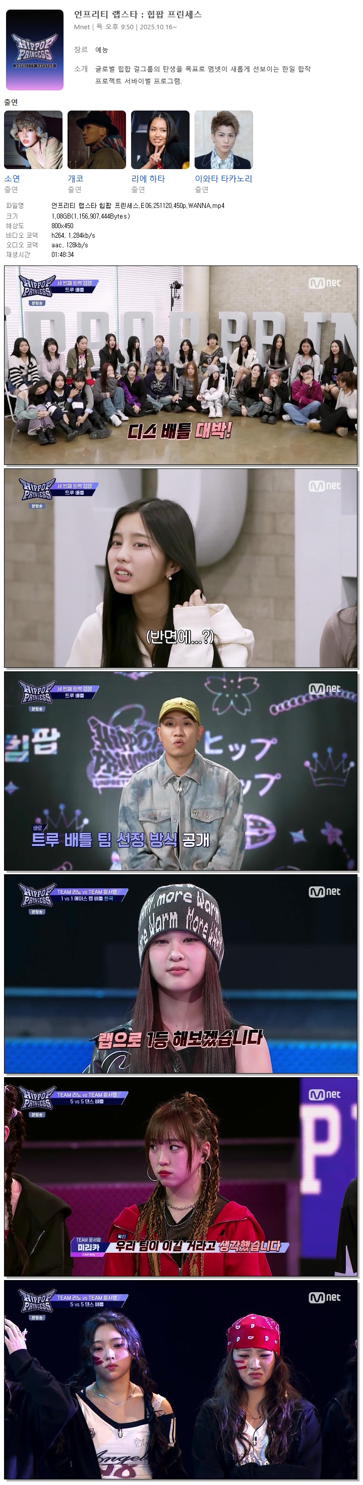 [M.net] 언프리티 랩스타 힙팝 프린세스.E06.251120.450p.WANNA[소연, 개코]