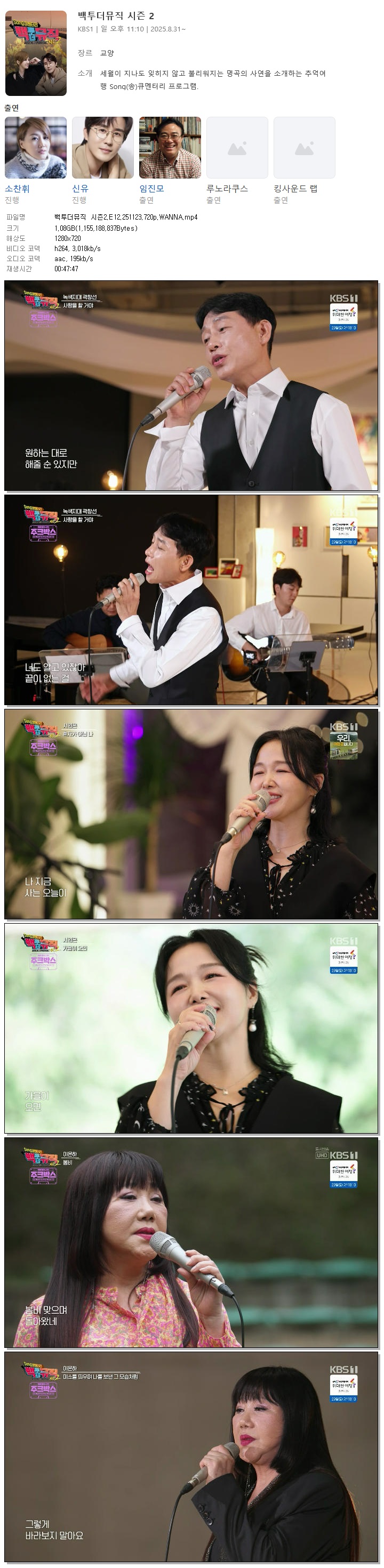 [KBS1] 백투더뮤직 시즌2.E12.251123.720p.WANNA[소찬휘, 신유].mp4