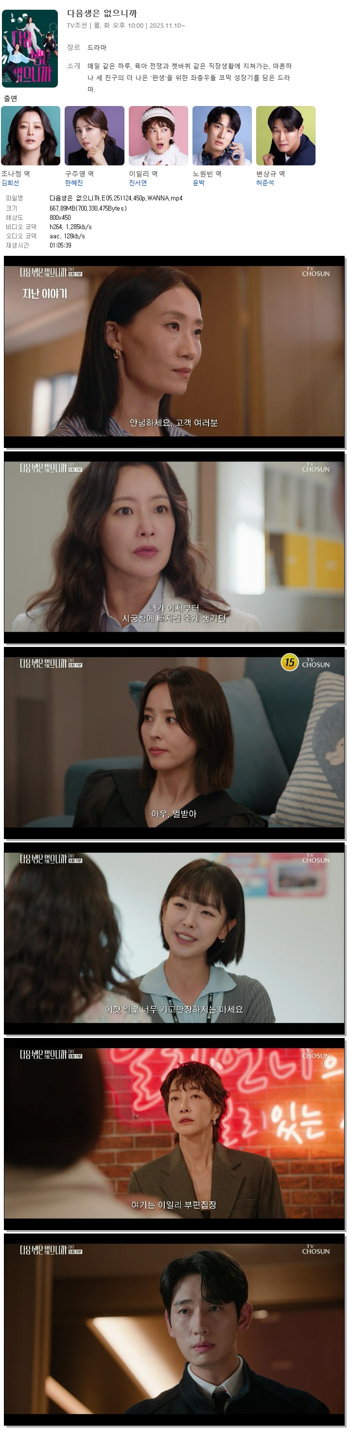 [TV조선] 다음생은 없으니까.E05.251124.450p.WANNA[김희선, 한혜진].mp4