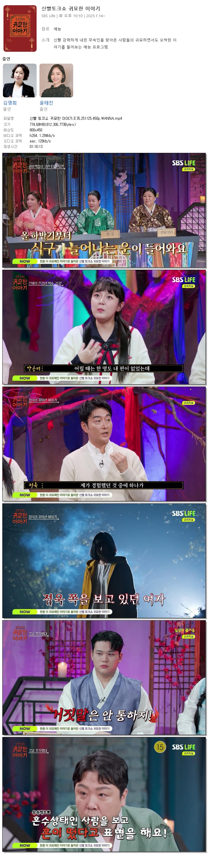 [SBS LIFE] 신빨 토크쇼 귀묘한 이야기.E35.251125.450p.WANNA[강은비, 정욱]