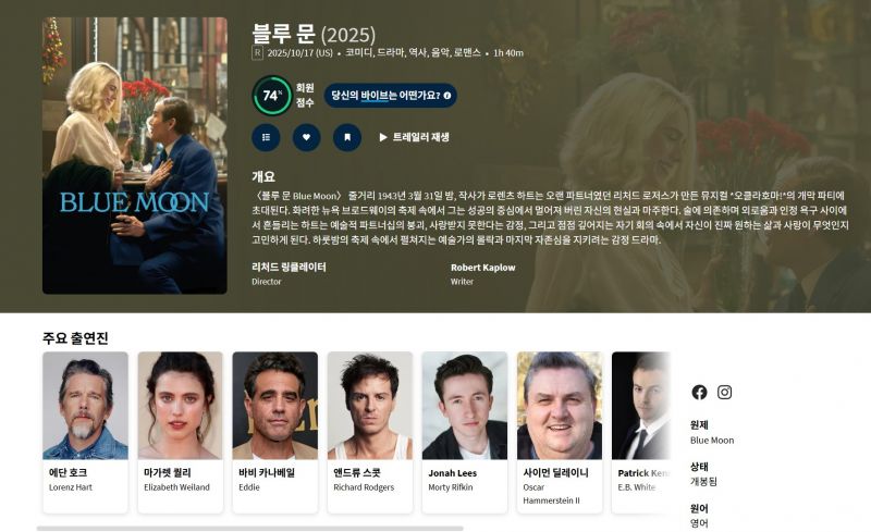 11월 개봉작 에단 호크x마가렛 퀄리 [ 블 루 문 ] 1080P 5.1 한글자막