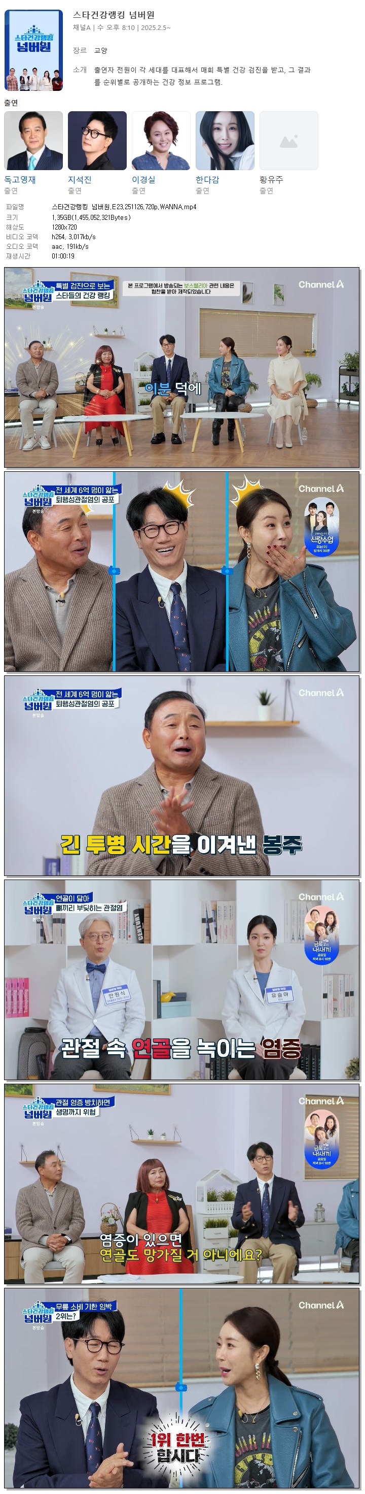 [채널A] 스타건강랭킹 넘버원.E23.251126.720p.WANNA[지석진, 이경실].mp4