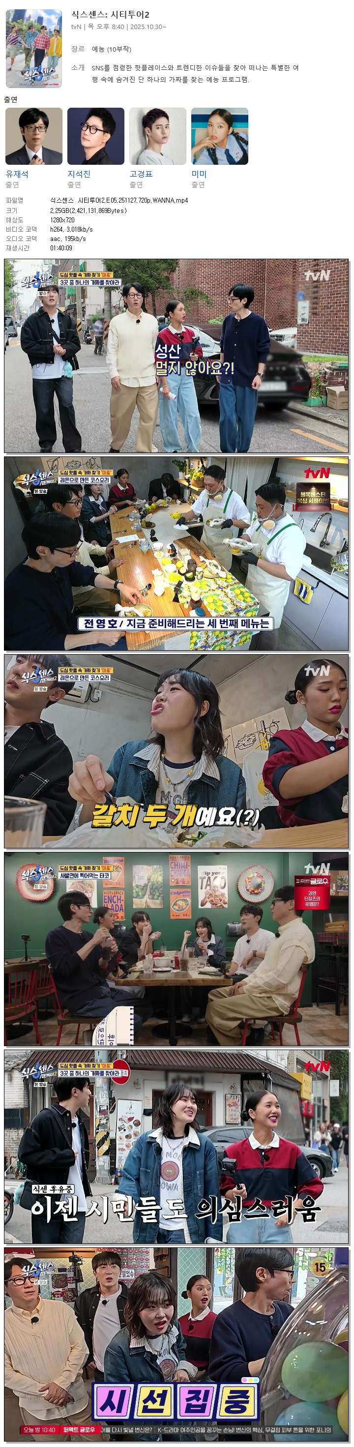 [TVN] 식스센스 시티투어2.E05.251127.720p.WANNA[김원훈, 엄지윤]