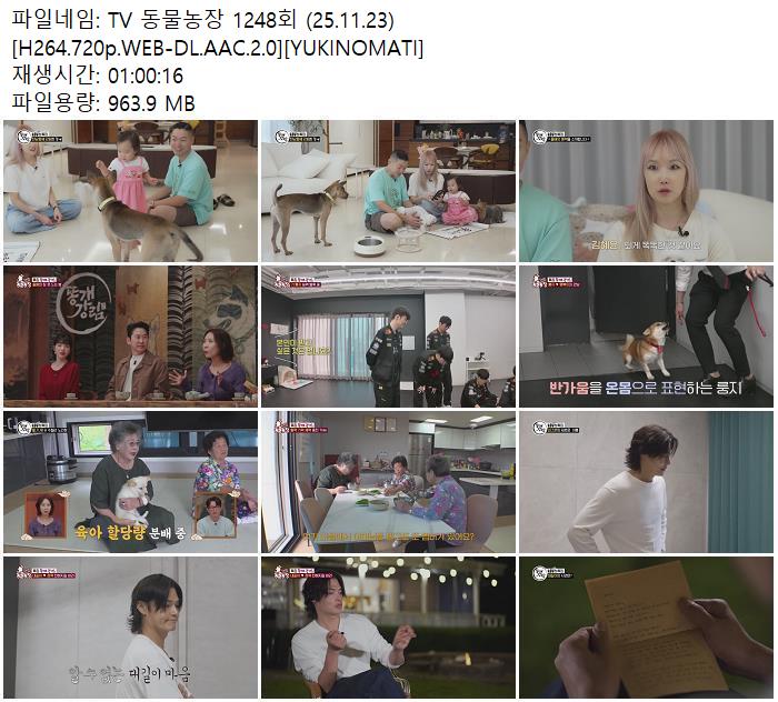 TV 동물농장 1248회 (25.11.23) [H264.720p.WEB-DL.AAC.2.0][YUKINOMATI].mkv