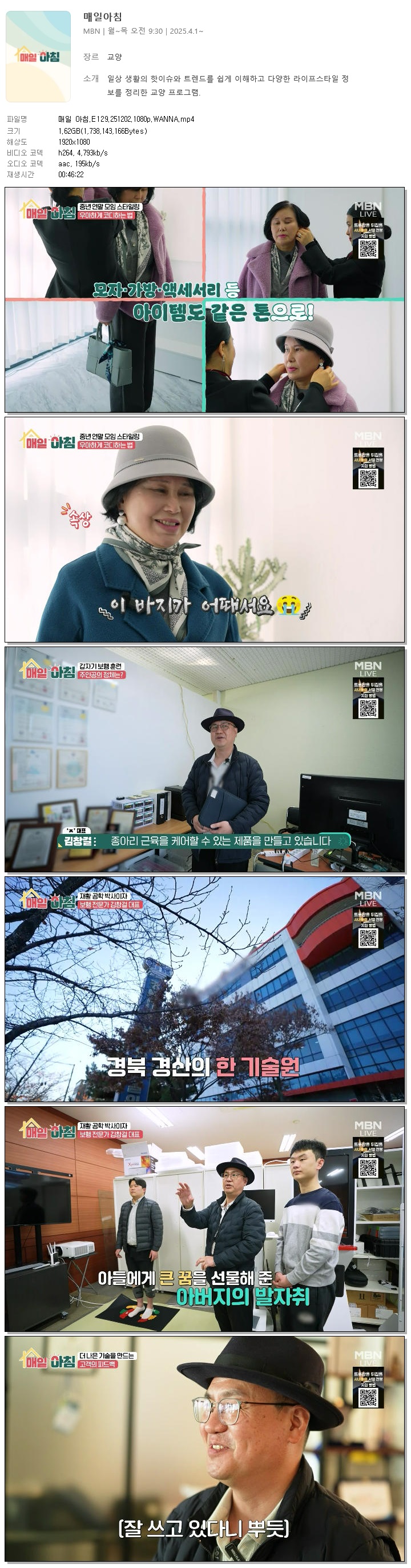 [MBN] 매일 아침.E129.251202.1080p.WANNA[한혜원, 이정수]