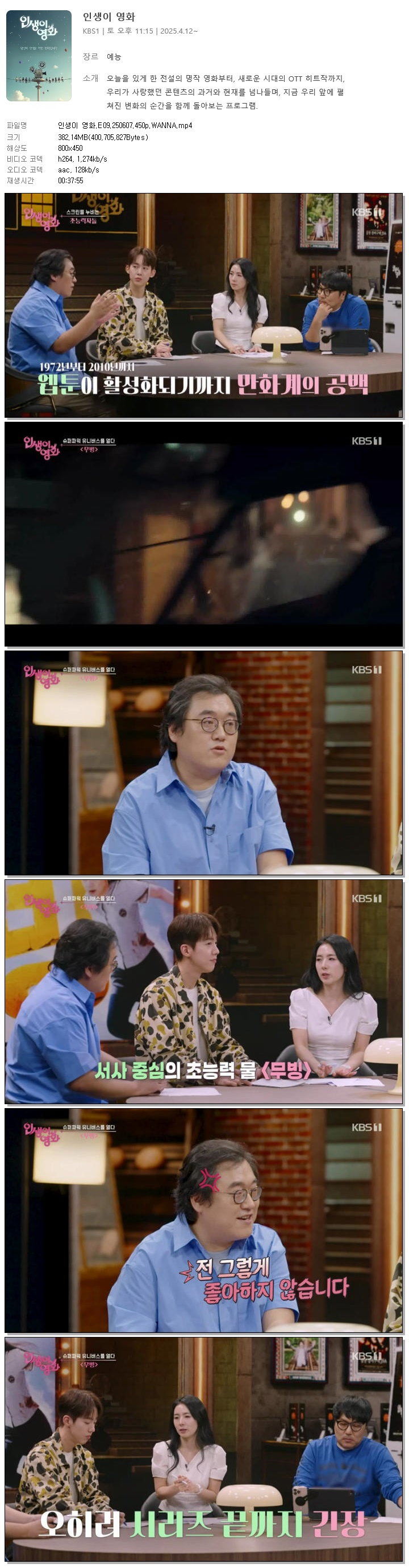 [KBS1] 인생이 영화.E09.250607.450p.WANNA.mp4