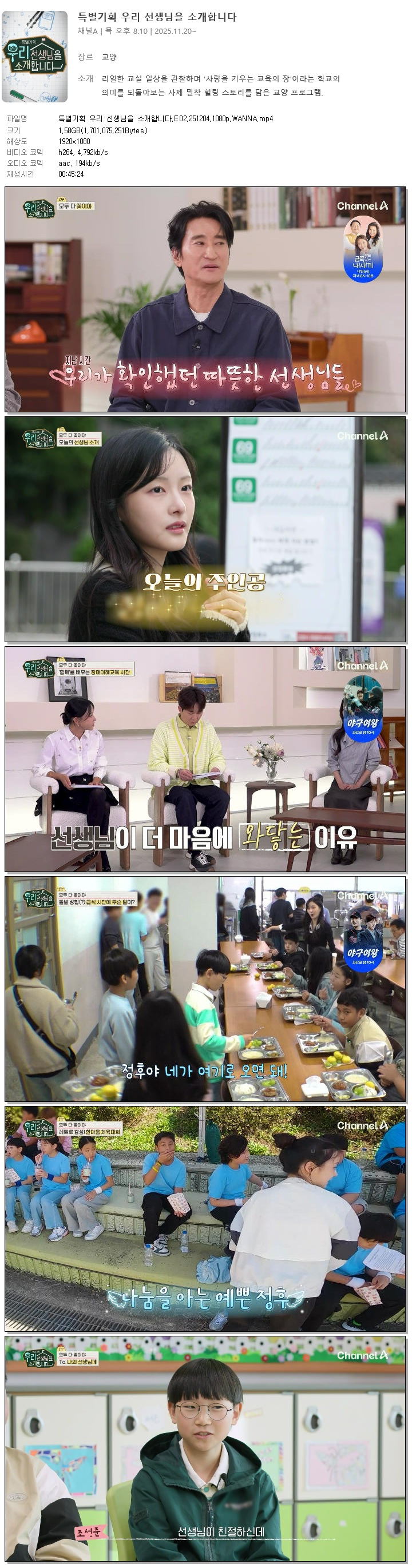 [채널A] 특별기획 우리 선생님을 소개합니다.E02.251204.1080p.WANNA