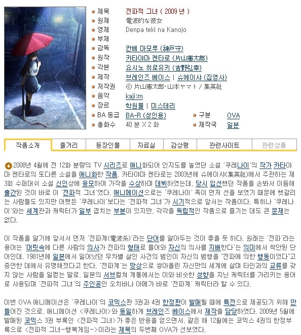 [인생] 전파적 그녀 [OVA] 01-02완결 -미스테리 스릴러 액션-