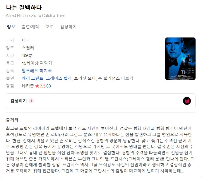 [영화-스릴러] 나는 결백하다.To.Catch.A.Thief.1955.1080p.한글자막