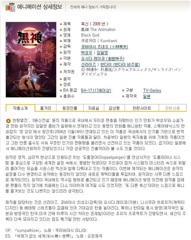 [애니][완결][자막] 흑신 20-23 스페셜 에디션 포함 - FHD 1080p KUROKAMI