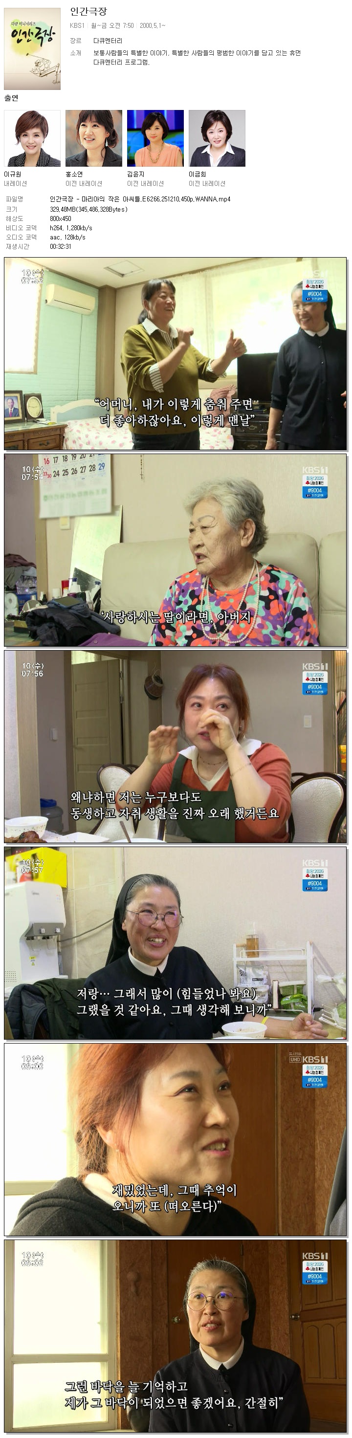 [KBS1] 인간극장 - 마리아의 작은 아씨들.E6266.251210.450p.WANNA
