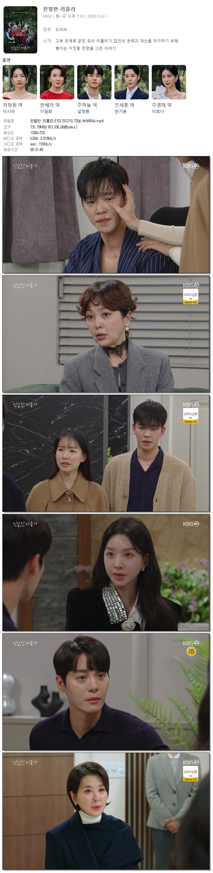 [KBS2] 친밀한 리플리.E53.251210.720p.WANNA[이시아, 이일화].mp4