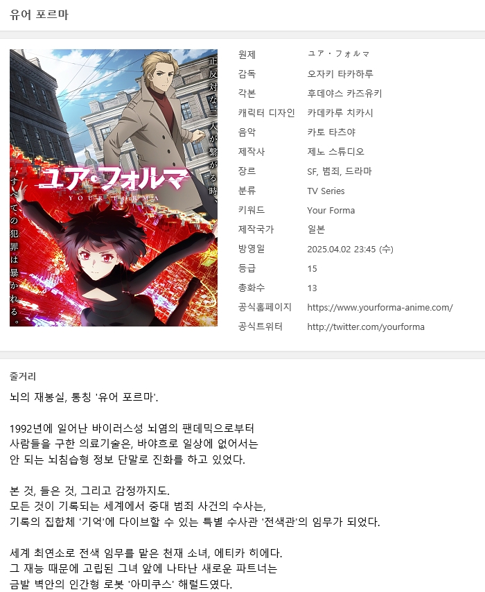 [인생] 유어 포르마 01-13완결 -모험 범죄 SF 액션-