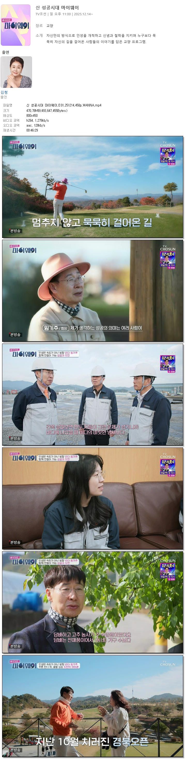 [TV조선] 신 성공시대 마이웨이.E01.251214.450p.WANNA[김청].mp4